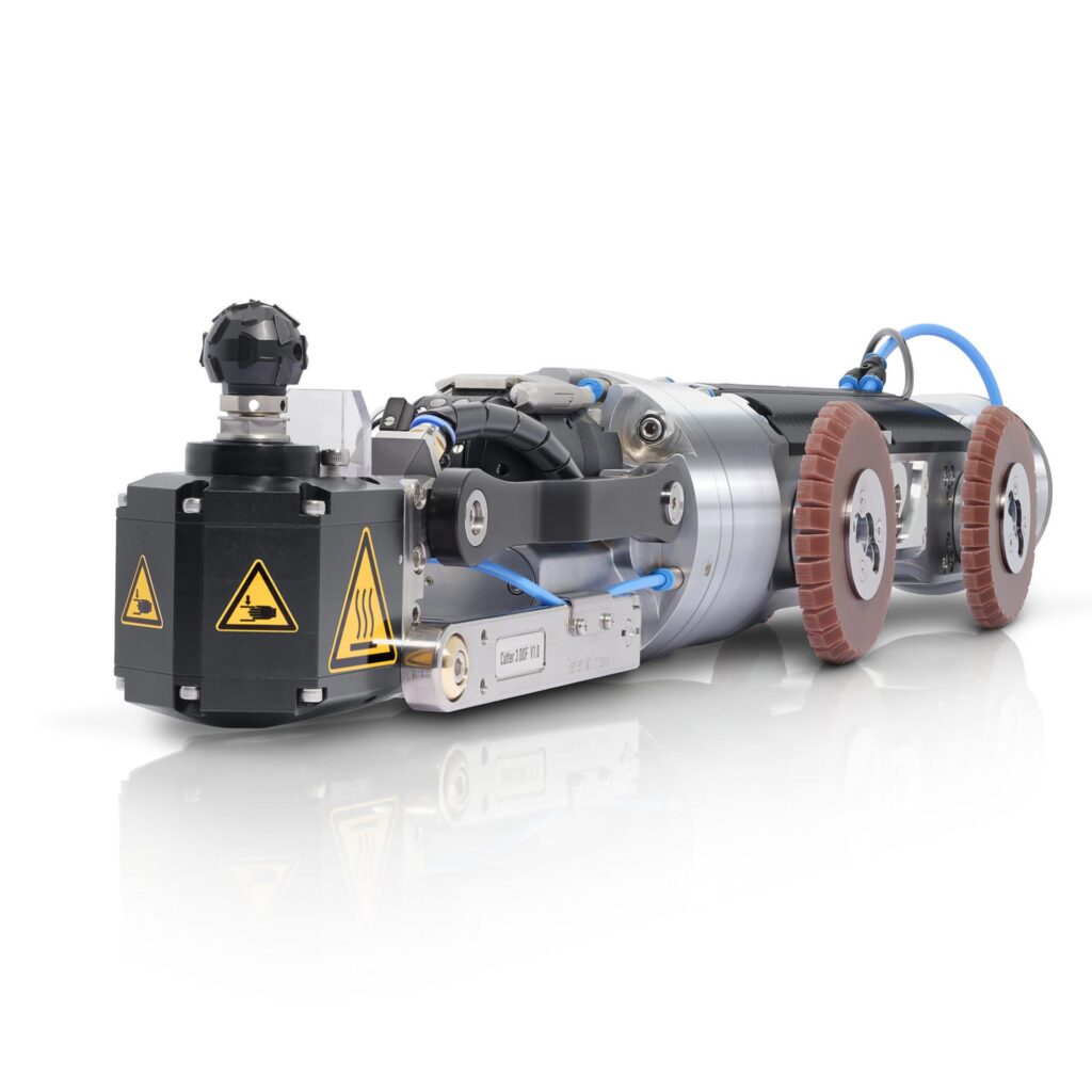 Our IBAK reinstatement cutter removes internal obstructions without excavation. This process clears concrete and mineral buildup, intruding service taps, metal or defective pipe sections, and restores lateral connections after lining projects.